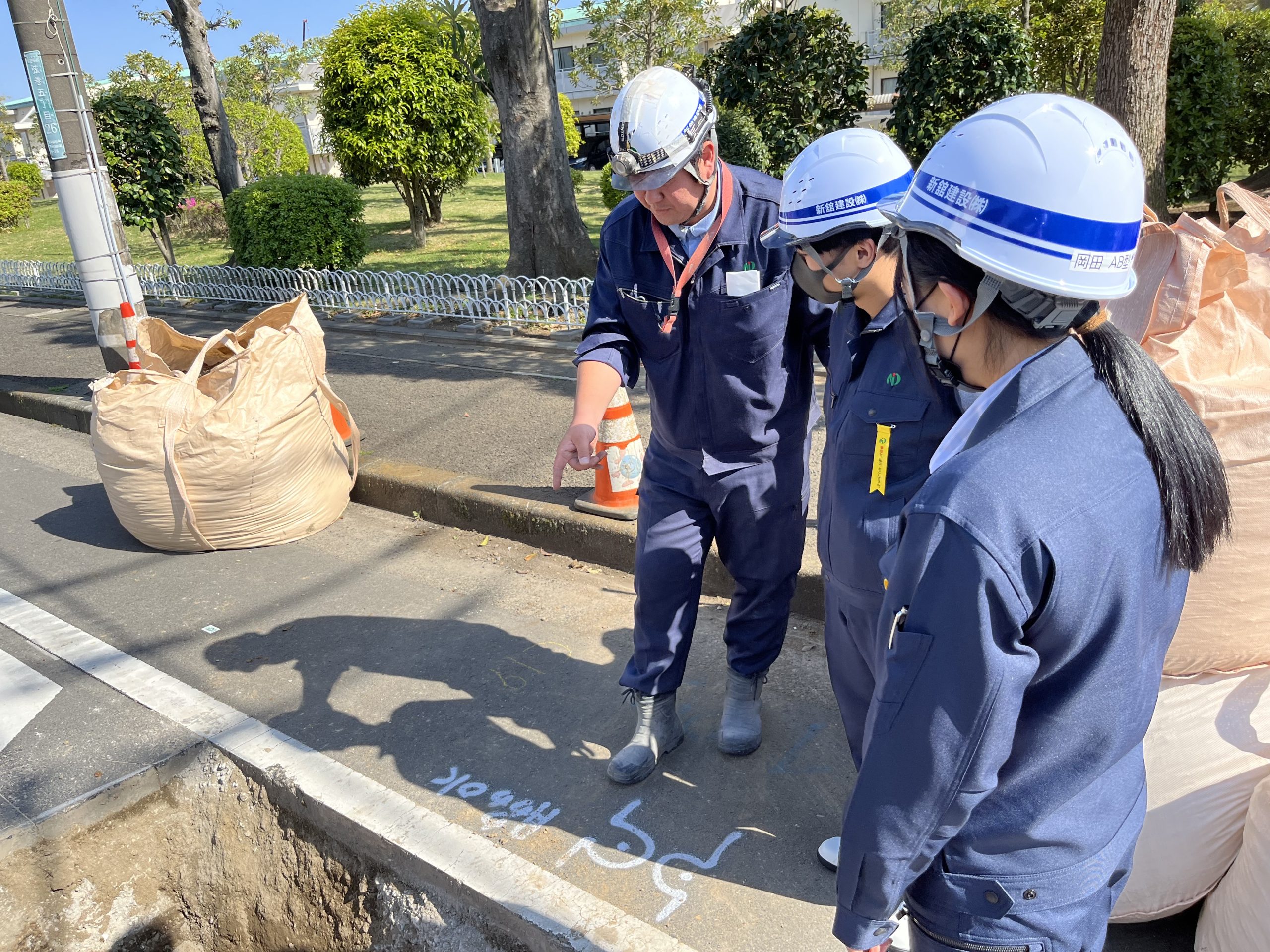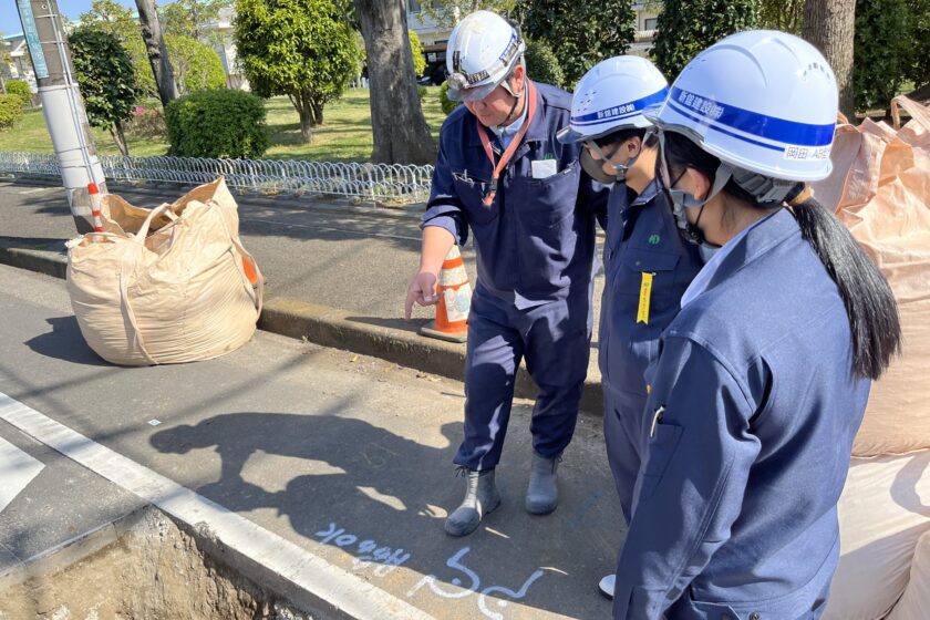新卒社員が入社してから早いもので1か月以上が経ちました。現在は2名とも、土木工事をメインとして現場実習を行っており、作業手順や安全対策、現場に対する心得などについて日々学んでおります。右も左もわからない状況ですが、積極的に現場関係者とコミュニケーションをとるようになり、勉強に対する前向きな姿勢がうかがえます。日々楽しんで現場を見学し生き生きとしているようです。