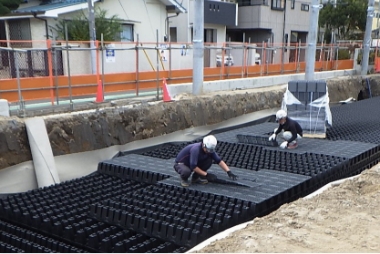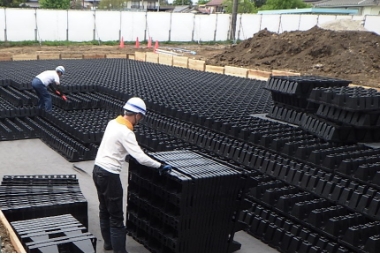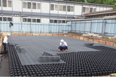 - 迅速・低コスト施工:軽量な樹脂モジュールを用いて、短工期・低コストでの貯留槽設置を実現。